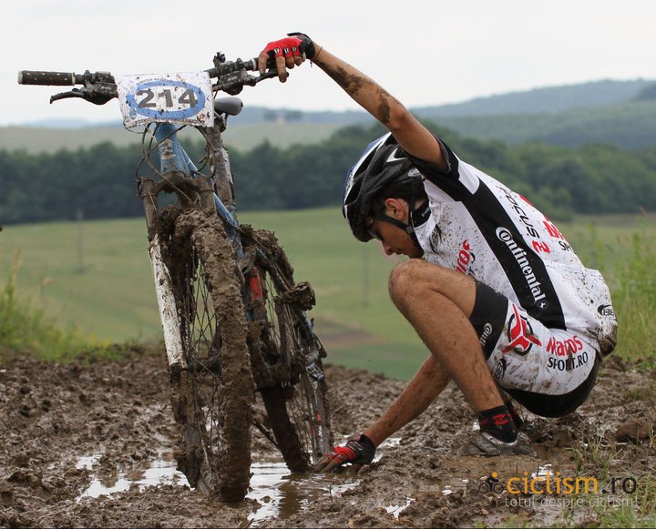 Am mers mult pe langa, s-au incarcat cauciucurile de 1.9 incat nu se mai invarteau si imi era greu sa ridic macar ghidonul. A fost distractie pentru mine, asa am abordat concursul pentru ca noroiul nu e pentru mine, nu am prea multe avantaje in fata celorlalti in aceste conditii. Totusi imi placea sa vad contrastul dintre cauciucul de 1.9 si cum arata incarcat, sa zic de 2.9 :))).