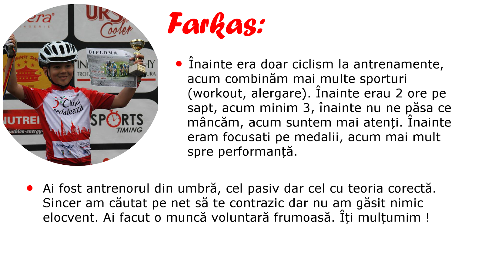 Ce ma recomanda nu sunt certificate si foi pe care le poate obtine orice persoana care se prezinta regulat intr-o sala timp de cateva saptamani. Ma recomanda sutele de ore de antrenament, miile de kilometri si aceste 2 fotografii: